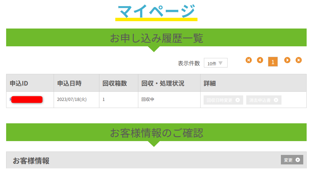 リネットジャパンのページから「カンタンお申込み」のリンクへ進み 簡単な質問に答えていくと申し込みができます。 ここで入力した住所情報あてに佐川急便が回収荷物を引き取りに来ていただけます。 伝票なども自分で用意する必要はありません。